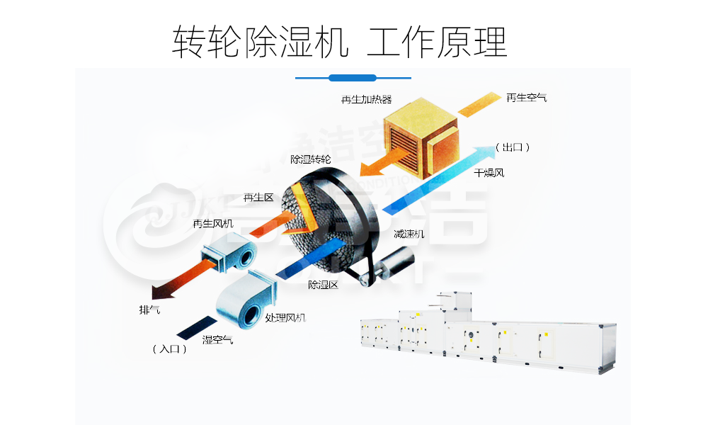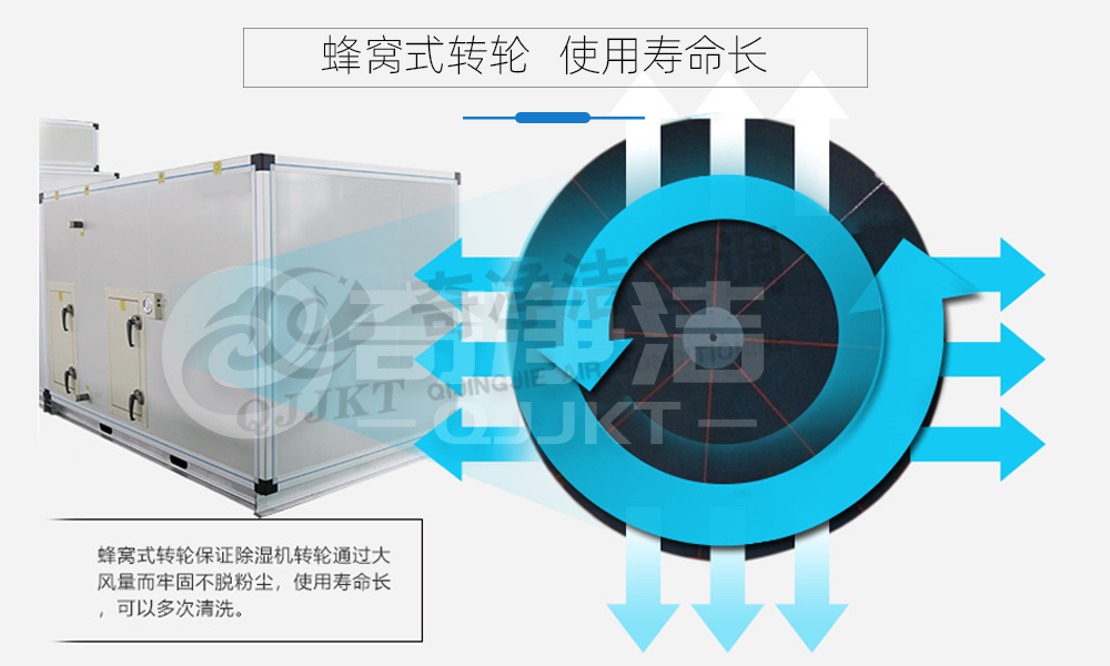 ●转轮除湿机即使在低温低湿的条件下依然的除去水分,处理出适合物质性质和房间条件的空气,营造出优良的且满足要求的环境。我公司推出转轮除湿机是适用于小空间且有较低湿度要求的场合